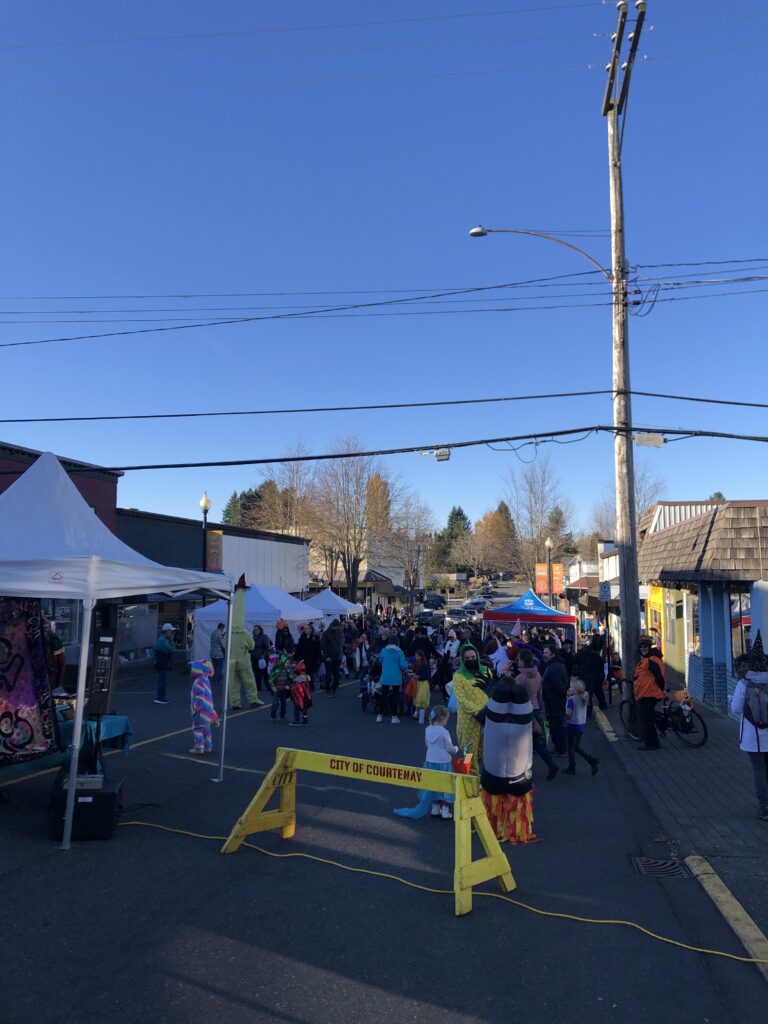 Am Samstag fand in der Innenstadt von Courtenay ein kleines Event statt, bei dem einige Pavillons aufgebaut waren und Süßigkeiten oder Spielzeuge für die Kinder ausgehändigt wurden. Es gab außerdem Musik und auf der Hauptstraße konnte man an fast allen Geschäften ebenfalls ein paar Snacks bekommen. Wir trafen uns also mit einem Pärchen und ihren zwei Söhnen und verbrachten etwa zwei Stunden Downtown.