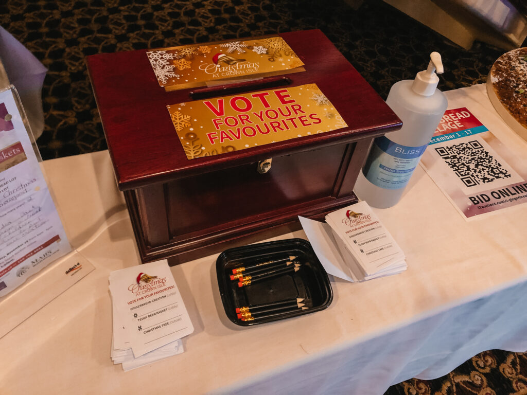 Weiter ging es mit einer Reihe von Weihnachtsbäumen, welche alle von unterschiedlichen Firmen geschmückt wurden und gegeneinander konkurrierten. Wir, als Besucher, hatten dann später die Möglichkeit auf einen Zettel unseren Favoriten zu schreiben und an der Rezeption abzugeben.