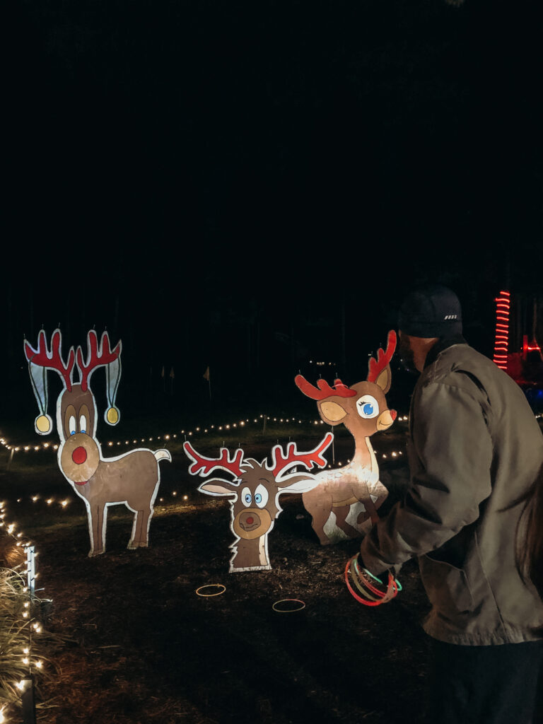 Darauf folgten jegliche weitere Dekorationen, wie ihr etwas weiter unten auch in den Fotos sehen könnt. Außerdem gab es drei Rentier Holzstatuen, aus dessen Hörnern je sechs Nägel herausragten. Unsere Aufgabe war es dann die Nägel von einer beliebigen Entfernung mit den danebenliegenden Leuchtringen zu treffen. Bei meinem Wurftalent teilte ich mir den letzten Platz mit Carolyn, denn wir beide trafen keinen einzigen Nagel, hatten aber trotzdem Spaß und das ist denke ich die Hauptsache 🙂