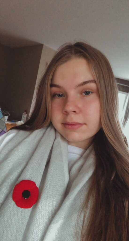 Da der 11. November in 2021 auf einen Donnerstag fiel und hier in British Columbia als ein gesetzlicher Feiertag gilt, fiel die Schule aus. Am Mittwoch ging ich aber ganz normal zur Schule, hatte allerdings in den ersten beiden Stunden nur verkürzt Unterricht. Der Grund dafür war die Zeremonie, welche direkt vor der Lunch Break in der Sporthalle mit der ganzen Schule abgehalten wurde. Es wurde ein Video abgespielt, bei der die Bedeutung des Tages nochmal erklärt wurde. Außerdem besuchten uns fünf junge Militärmitglieder und eine Dudelsackspielerin. Die kanadische Hymne wurde, wie auch am Terry Fox Day, gespielt und zuletzt gab es eine Schweigeminute.