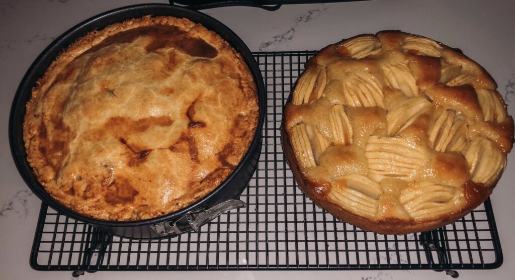 Eines meiner Highlights am 25. Dezember war definitiv auch das Essen, welches sich als eine weitere tolle Überraschung meiner Gastfamilie herausstellte. Dadurch, dass ich mit meiner deutschen Familie Weihnachten immer sehr traditionell feiere und es somit auch jedes Jahr gleich abläuft, vermuteten meine Gasteltern bereits, dass ich es vermissen würde. Um mir das beste Gefühl von Zuhause vermitteln zu können, kümmerten sie sich darum, dass es als Abendessen Kartoffelklöße, Semmelknödel, grüne Bohnen, Ente und Salat gab. Vorab hatten sie meine Eltern kontaktiert und nach Rezepten gefragt und als ich dann die gewürfelten Brotscheiben in der Küche liegen sah, wurde mir ihr Plan klar. Zum Nachtisch gab es Apfelkuchen sowie ein Apfel-Zimt Pie aus einem deutschen Kochbuch, welches ich als Gastgeschenk mitbrachte. Eventuell fragt ihr euch, wieso es zwei Kuchen gab, der simple Grund dafür war einfach, dass wir am Vorabend zu viele Äpfel geschält hatten und uns auch noch während eines Stromausfalls in der Siedlung eine Notlösung überlegen mussten.