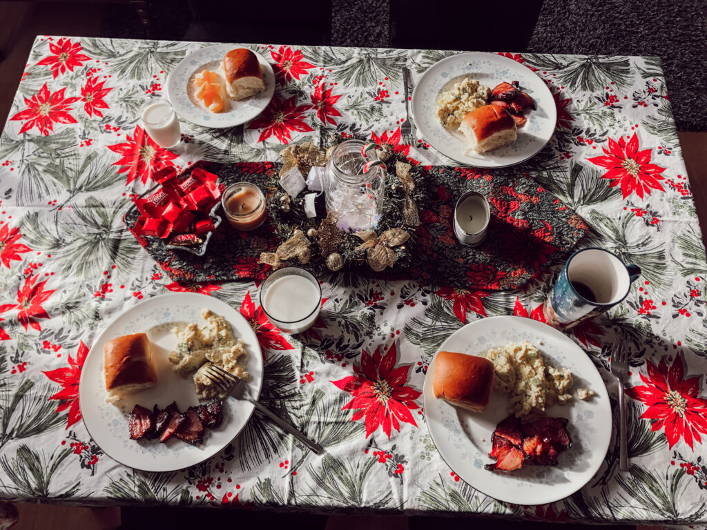 Eins kann ich euch sagen, so lief es bei mir nicht ab! Für einige mag es eine Enttäuschung sein, ich war aber um ehrlich zu sein froh, dass das Klischee zumindest auf meine Familie nicht zutraf. Jeder hatte zwar seinen eigenen Stocking, für mich hatte mein Gastvater Guy sogar extra noch einen mit meinem Anfangsbuchstaben drauf gekauft, doch wir hingen sie einfach an ein Regal im Wohnzimmer. Die Inhalte des Stockings wurden tatsächlich am Morgen des 25. Dezembers geöffnet, im Schlafanzug, ganz in Ruhe und immer nur ein Geschenk pro Person, dann war der oder die Nächste an der Reihe. Bevor das allerdings passierte, mussten wir erst einmal etwas Schnee schippen, denn es hatte über Nacht knapp 20cm geschneit. Gegen Ende hin schlug die Arbeit jedoch eher in Quatsch machen um und kurz darauf ging es zum Frühstück wieder ins Haus.