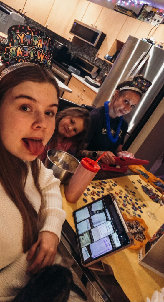 Die restlichen drei Stunden von 2021 wurden weiter gepuzzelt und wir schauten einen Live Countdown. Kurz vor Mitternacht riefen meine Eltern mich an und wir feierten ebenfalls gemeinsam in 2022 hinein, diesmal nach kanadischer Zeit. Dass Carolyn mit ihren fünf Jahren bis dahin wach blieb, hat uns denke ich alle überrascht, doch um kurz nach zwölf machten wir uns dann alle schonmal bettfertig und starteten somit die erste Nacht im neuen Jahr!