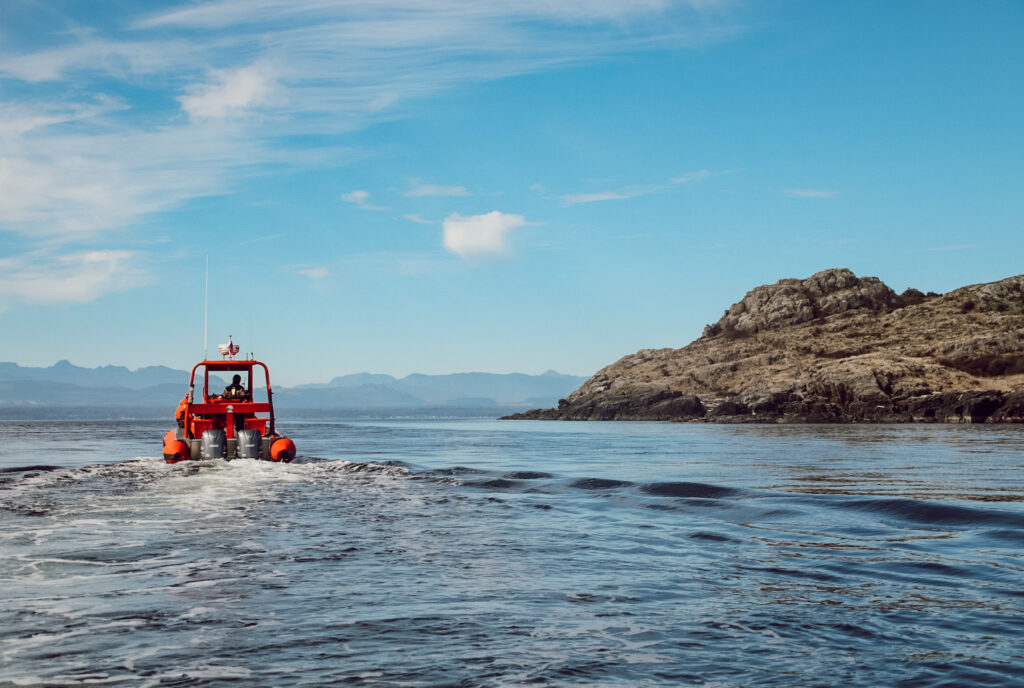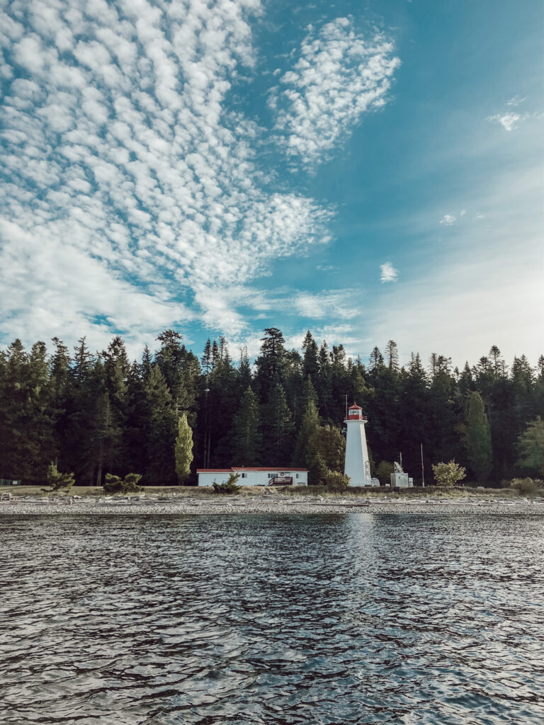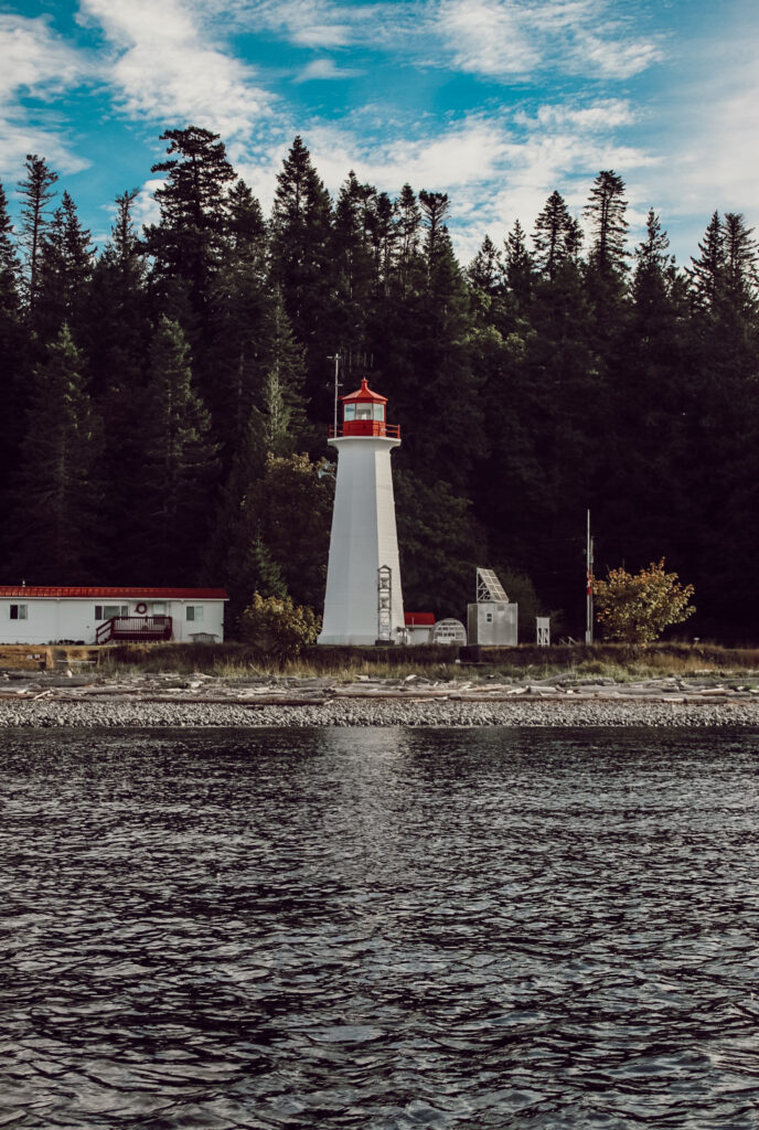 Übrigens hatten auch unsere Boote eine rote Farbe und wir waren mit Abstand die auffälligste Crew, die den Hafen verließ. Anschließend mussten wir die Bucht verlassen und kamen an dem Cape Mudge Lighthouse (= Leuchtturm) vorbei, welcher seit 1898 existiert.