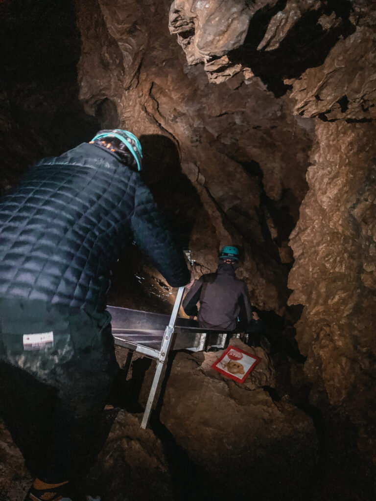Unsere Gruppe begann dann mit der kürzesten, aber dafür schwersten Höhle, in der man auch am nassesten wird. Dass diese die größte Herausforderung war, ließ uns unser Guide allerdings erst wissen, als wir bereits bis ganz in die Höhle hinein gegangen sind und dann wieder draußen waren. Vermutlich tat er das, um uns nicht abzuschrecken.