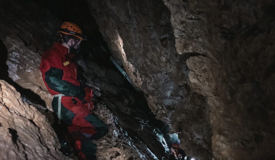 Nach einer sehr holprigen Fahrt durch den Wald und am Horne Lake vorbei, kamen wir am Camp an. Dort wurden wir dann in drei Gruppen mit je etwa zwölf Schüler*innen aufgeteilt und bekamen pro Gruppe einen Tourguide zugewiesen. Dieser gab uns allen einen Helm inklusive Stirnlampen und erklärte, was in den Höhlen zu beachten ist. Ich zog an dieser Stelle dann meine dritte Hose drüber, welche glücklicherweise auch Reißverschlüsse für die Hosentaschen hatte, was sich später als sehr vorteilhaft herausstellte.
