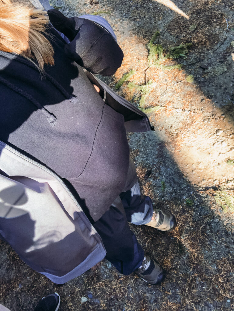 Bevor wir von unserem Bus von der Schule abgeholt wurden, mussten wir noch am Unterricht teilnehmen. Uns wurde bereits vor dem Trip geraten sich wettergemäß anzuziehen. Da ich aber nicht mit meiner ganzen Ausrüstung in der Schule herumlaufen wollte, hatte ich dann eine Regenhose von meinem Gastvater, Handschuhe und eine Mütze in meinem Rucksack. Ich meine, es reichte ja schon, dass ich mit Sommertop, T-Shirt, Hoodie und Jacke, sowie einer Sporthose und darüber einer Jeans und Wanderschuhen meiner Gastmutter zwei Stunden im Unterricht saß…